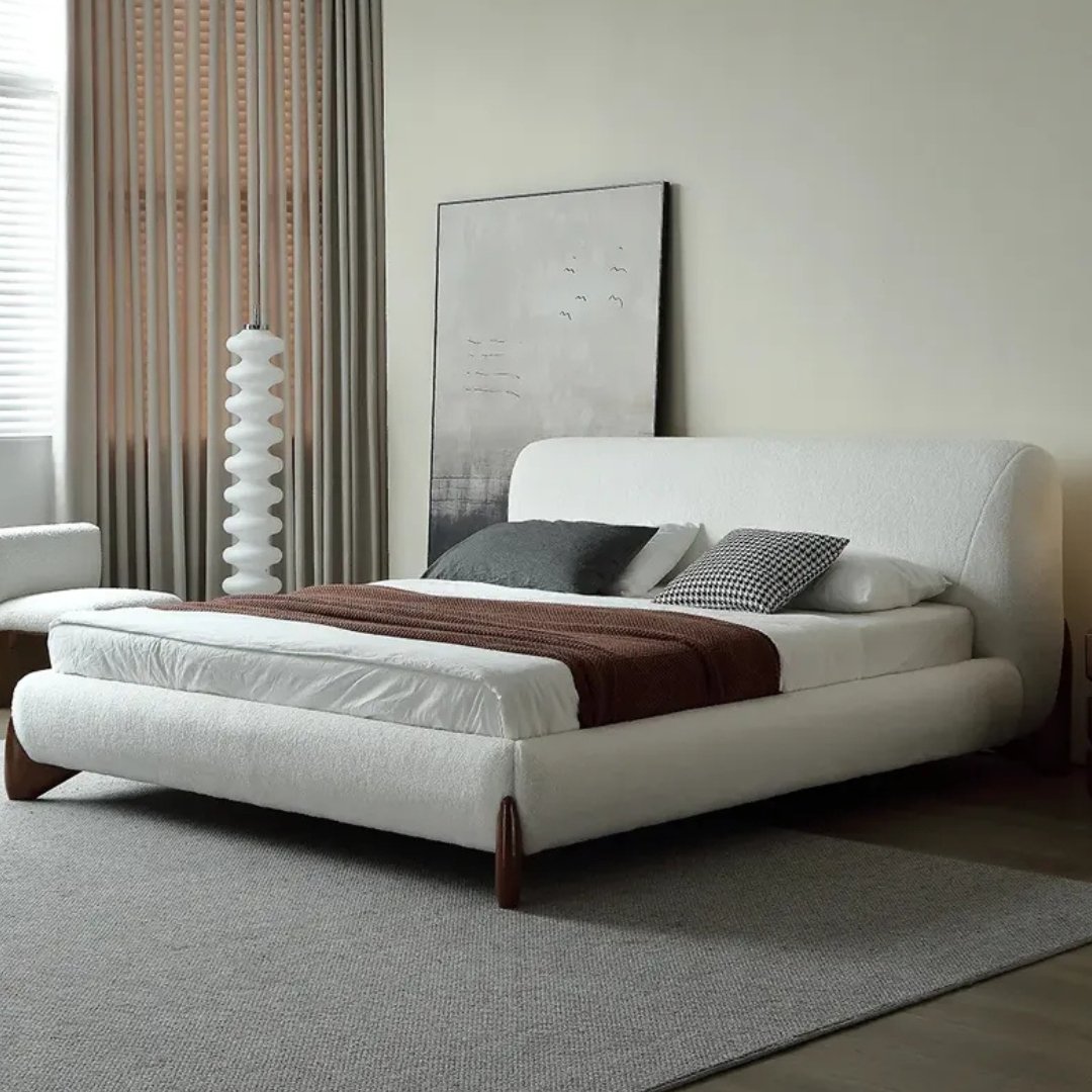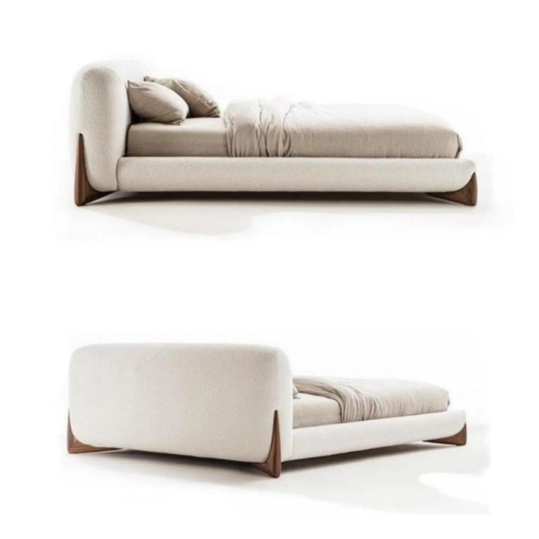 With its soft curves, neutral tones, and subtle wooden accents, this bed offers a serene and sophisticated sleep space that complements both urban and classic interiors.