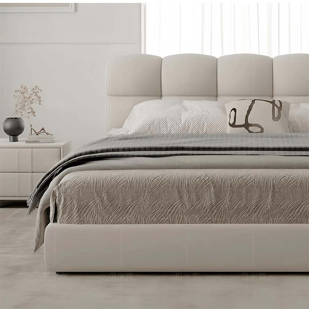 A modern upholstered bed with a softly padded headboard and clean design, created for everyday comfort and elegant bedrooms.