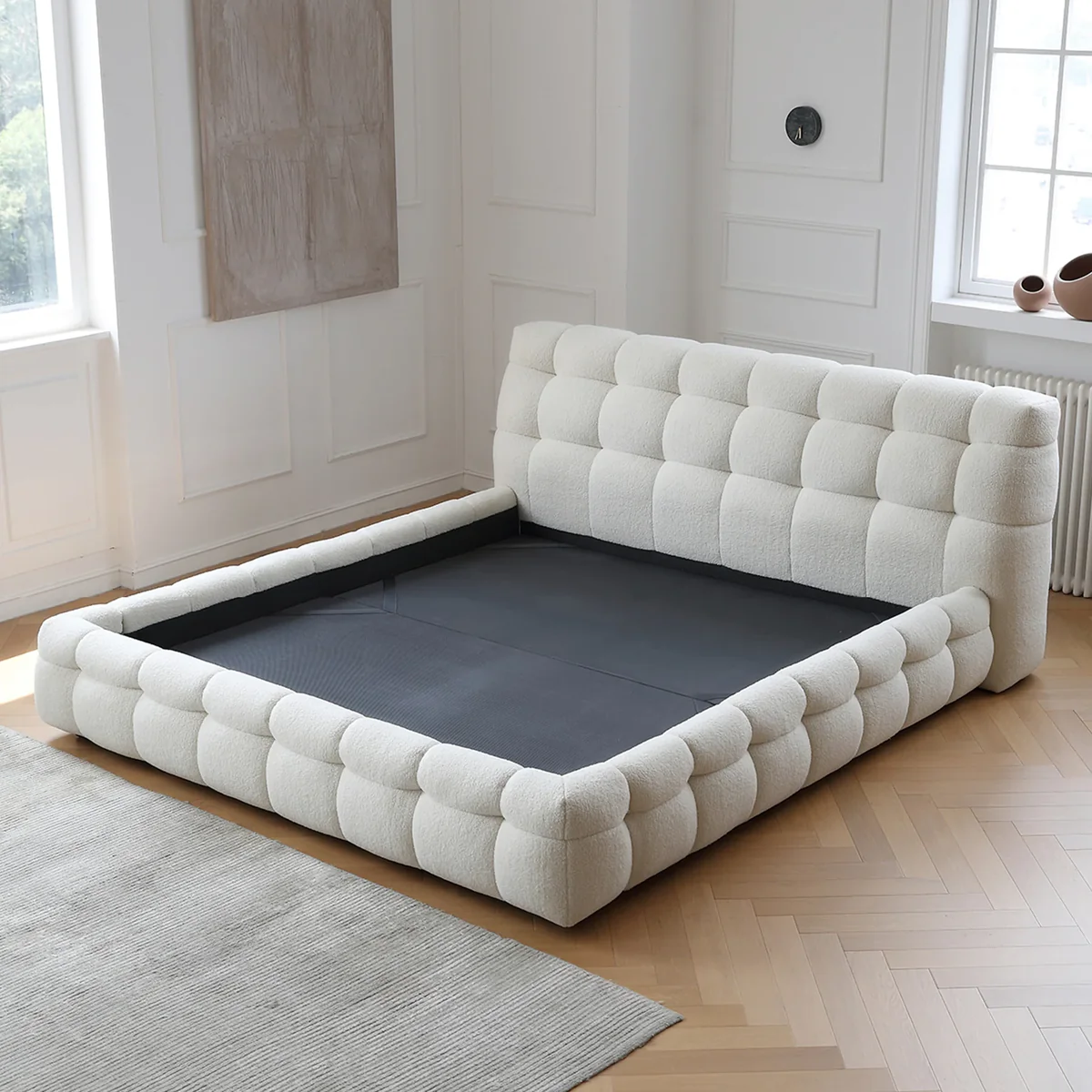 Its ultra-low platform gives a grounded, sleek look, while the padded panels create a cozy environment that feels like a cloud. Whether you’re designing a master suite or upgrading a modern guest room, this bed adds both elegance and plush comfort.