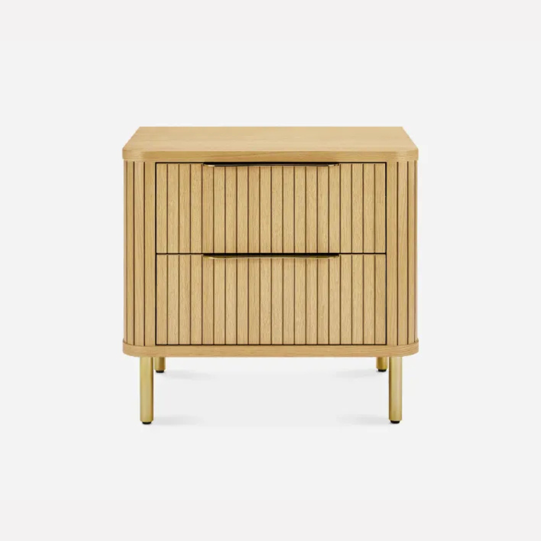 Add a touch of luxury to your bedroom with our modern bedside table. Featuring elegant fluted wood design, gold metal legs, and practical storage — it’s a statement piece your space deserves.