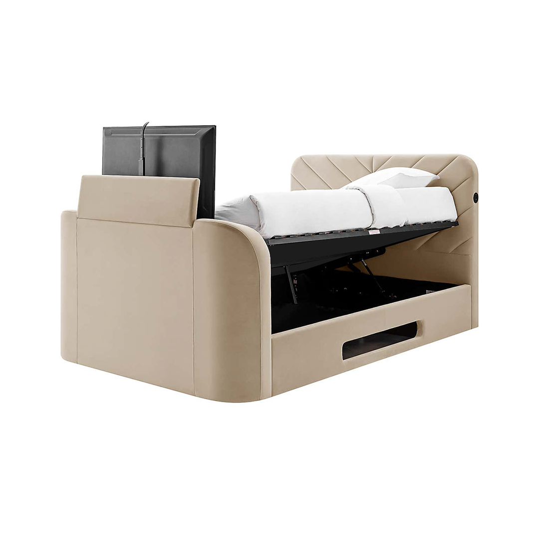 Its plush headboard, soft neutral tones, and hidden technology create a perfect balance of comfort and innovation. Whether you’re relaxing after a long day, enjoying your favorite shows, or elevating your interior décor, the Emirates Luxe TV Bed delivers a truly elite lifestyle experience.