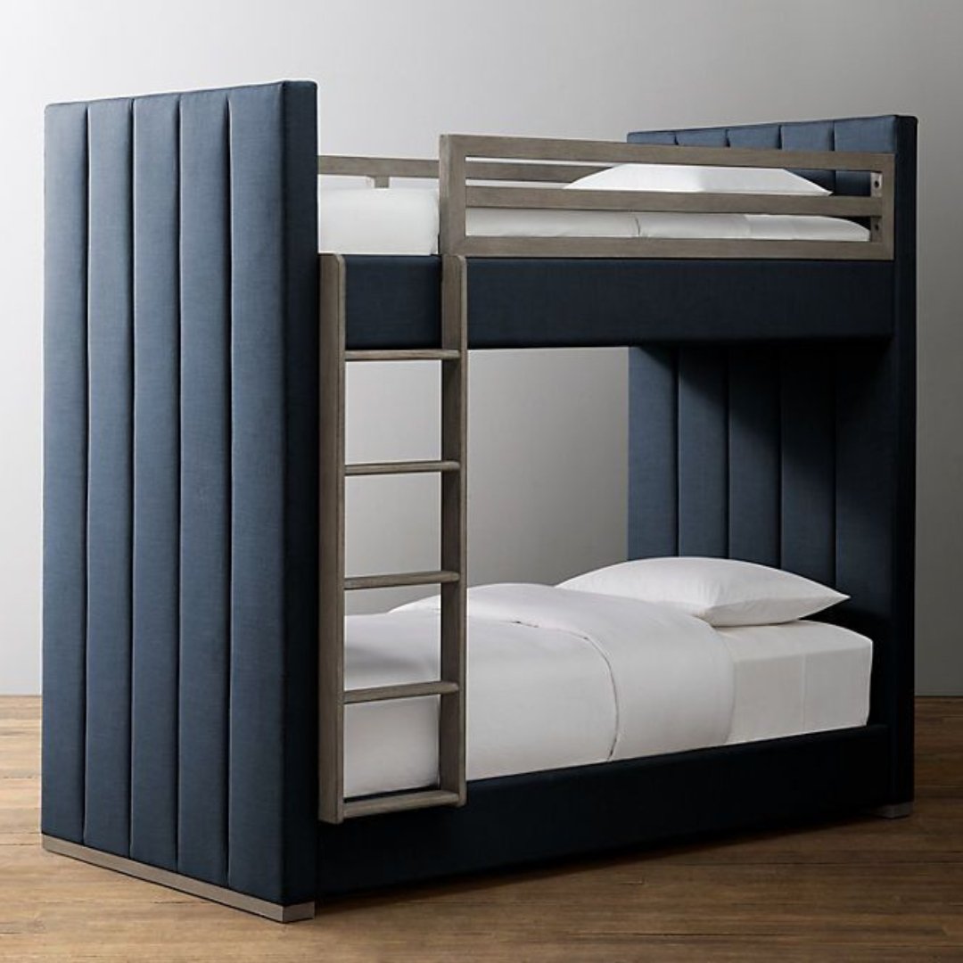 Upgrade your child’s bedroom with this modern black bunk bed featuring a luxurious upholstered frame and a natural wood ladder for easy access. Designed for growing families in Dubai, Abu Dhabi, Sharjah, and beyond, this twin-over-twin bunk bed combines sleek design with practical space-saving functionality perfect for urban apartments or spacious villas.