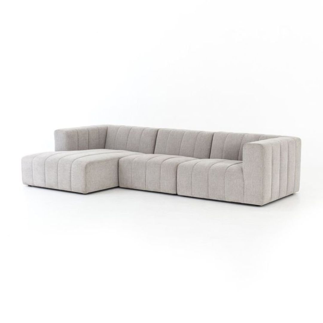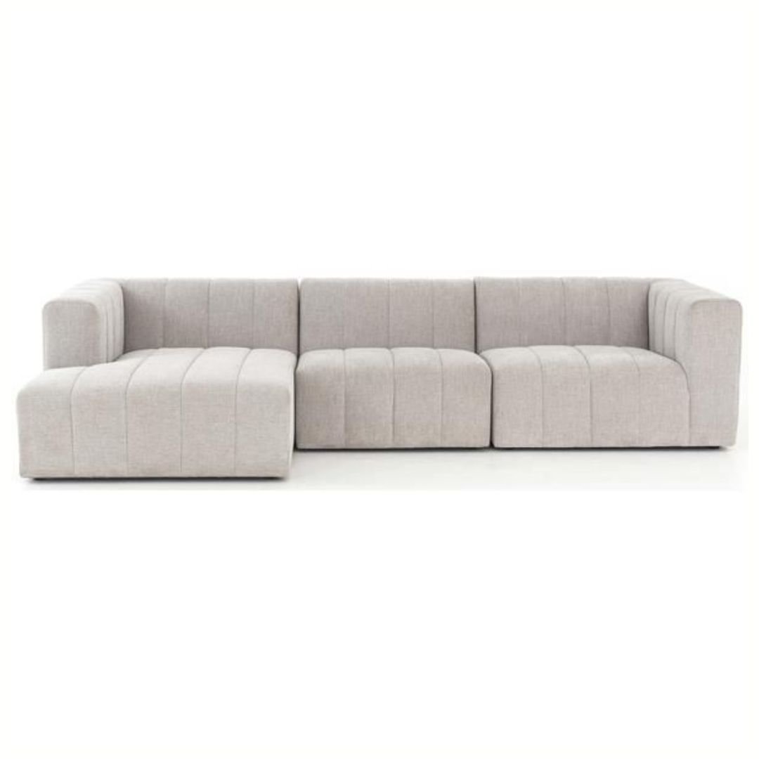 The chaise invites you to stretch out and relax, while the modular design allows easy rearrangement to suit your room layout. With deep seating and plush, vertical tufted cushions, this sofa combines minimalism with luxurious comfort.